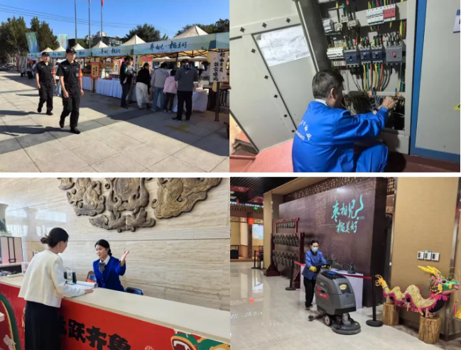 節(jié)日期間,項目統(tǒng)一部署,安排安保人員加強安全打卡巡邏頻次,時刻保持安全警惕,24小時不間斷值班嚴(yán)格把控場館的各個出入口,為游客提供安全的參觀環(huán)境。安排保潔人員在重點區(qū)域、人流密集區(qū)域增設(shè)垃圾桶,落實專人緊盯衛(wèi)生間,人手一套清掃工具不斷巡回檢查,發(fā)現(xiàn)問題隨即處置不拖沓。安排維修人員隨時待命,館內(nèi)設(shè)備設(shè)施全覆蓋,確保場館的設(shè)施設(shè)備正常運行。安排客服人員設(shè)置溫馨服務(wù)臺,內(nèi)置便民服務(wù)設(shè)施,為市民朋友提供咨詢、引導(dǎo)、建議、講解等貼心服務(wù)。