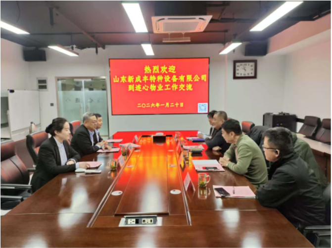 2026年1月20日上午,山東新成豐特種設(shè)備有限公司董事長劉立清、副總經(jīng)理張東坡、銷售經(jīng)理張振群等到濟(jì)南連心物業(yè)進(jìn)行工作交流。連心物業(yè)黨支部書記、董事長王宏勇、黨支部副書記、總經(jīng)理曹立、辦公室主任孫耀先等參加工作交流活動(dòng)。