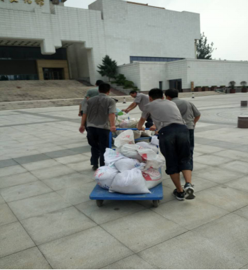 濟(jì)南連心物業(yè)有限公司員工搬運(yùn)黃沙袋